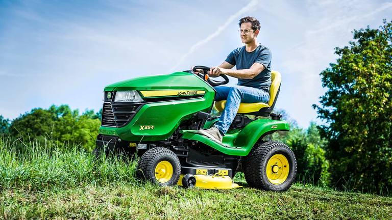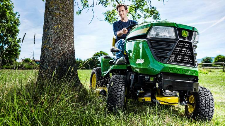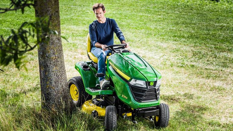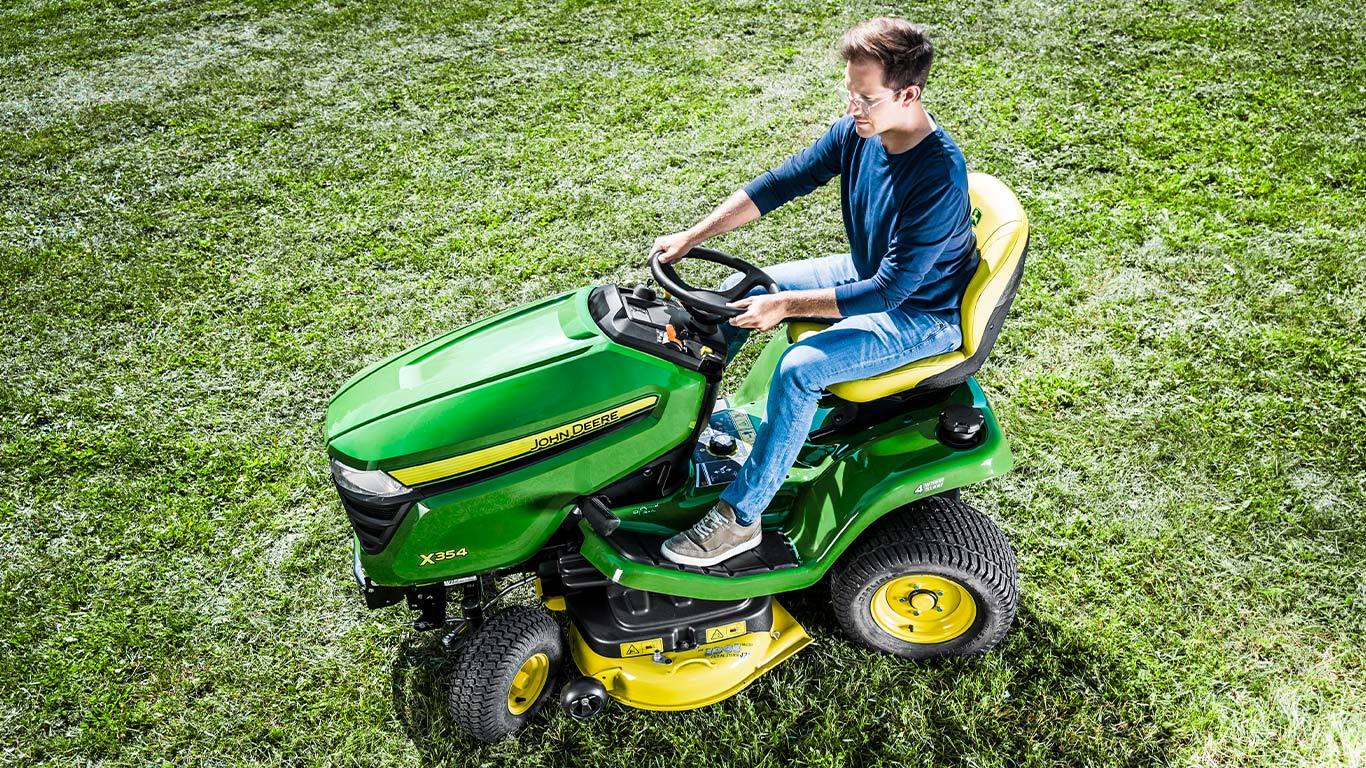 Nicht bei jedem Rasen ist das Mähen in gerader Richtung möglich. Wenn Sie um Blumenbeete, Bäume und Büsche herumfahren müssen, bietet die Vierradlenkung des X354 herausragende Manövrierfähigkeit und erleichtert somit die Mäharbeiten. Darüber hinaus sorgen ein modernes Display wie in einem Auto, ergonomisch angeordnete Bedienelemente und ein Getriebe mit Twin Touch™-Pedalsteuerung für viel Fahrspaß mit dem X354.