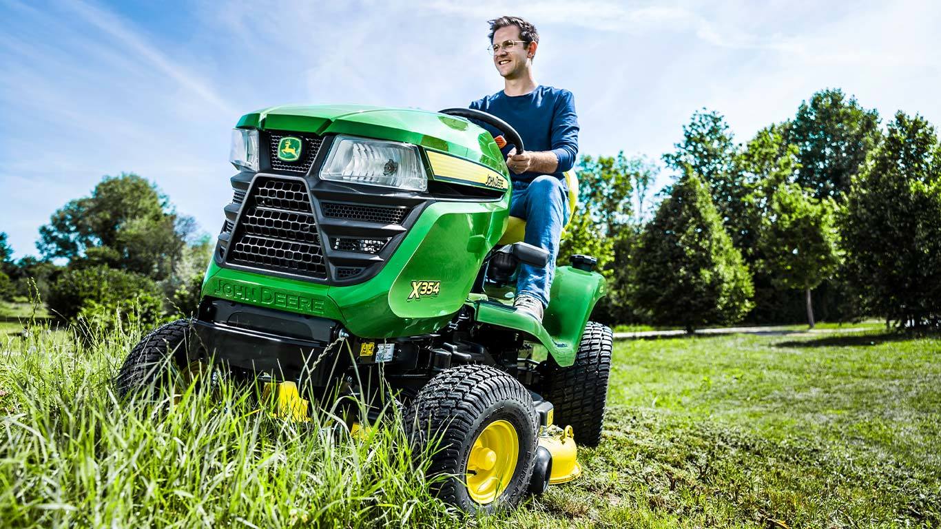 Nicht bei jedem Rasen ist das Mähen in gerader Richtung möglich. Wenn Sie um Blumenbeete, Bäume und Büsche herumfahren müssen, bietet die Vierradlenkung des X354 herausragende Manövrierfähigkeit und erleichtert somit die Mäharbeiten. Darüber hinaus sorgen ein modernes Display wie in einem Auto, ergonomisch angeordnete Bedienelemente und ein Getriebe mit Twin Touch™-Pedalsteuerung für viel Fahrspaß mit dem X354.