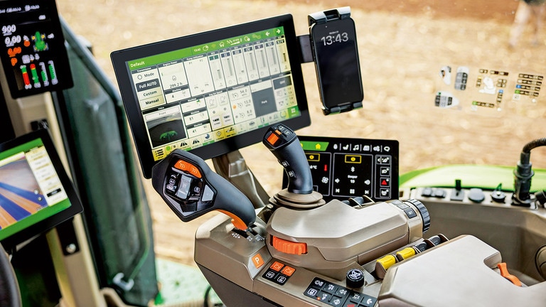 Die Traktor-Serie 8 setzt Maßstäbe beim Kabinenkomfort. Ausgestattet mit der bewährten 3,30 m³ CommandView™ 4 Kabine mit einstellbarer Federung oder ActiveSeat™ II, 65° Sitzschwenkung, drei Fußstützen, dem Touchscreen-Radio der zweiten Generation mit kabellosem Apple CarPlay° und Android Auto® sowie dem hochwertigen 6.1‑Sound‑System. Der neue elektrisch verstellbare Sitz mit Memory-Funktion, Nackenbelüftung und Massageoptionen bietet selbst an langen Arbeitstagen höchsten Komfort. Die neue CommandARM™ Generation mit Convenience Display sowie CommandXPlus oder CommandXPro ermöglicht die Steuerung aller wichtigen Funktionen direkt per Fingertipp.