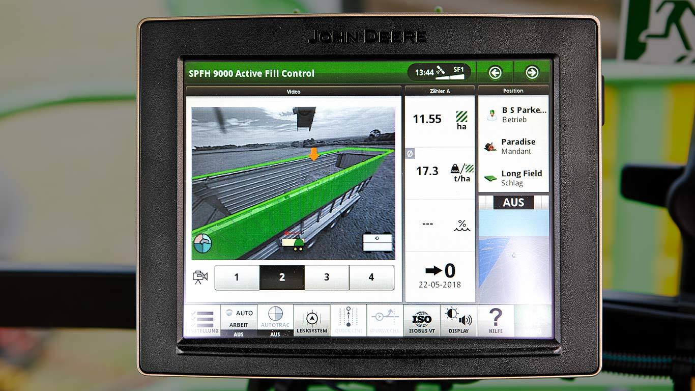 Le nouveau moniteur étendu génération 4 double la surface de l’écran pour vous permettre de surveiller et de contrôler simultanément plus de fonctions, comme l’affichage des fonctions de contrôle du véhicule, les applications d’agriculture de précision, ISOBUS et les caméras en même temps.